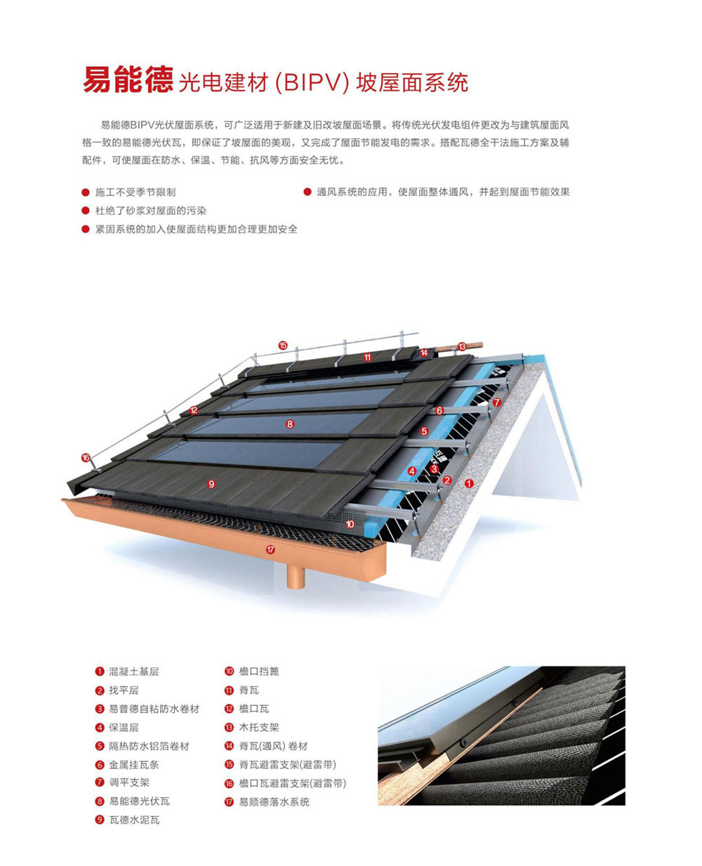 瓦德新材始終秉承著“雙碳經濟綠色發展”的目標和理念。提出了“屋面系統一體化”的理論,以產品屬性為依據進行系統化設計,致力于實現“通風屋面”、“節能屋面”和“零碳屋面”的目標,受到廣泛認可和應用。并且,發揮自身的“產業優勢、創新優勢、品牌優勢、市場優勢”,與光伏產業的頭部企業合作,共同開發出易能德光伏與建筑一體化(BIPV)系列產品,以推動綠色節能建材行業的可持續發展。